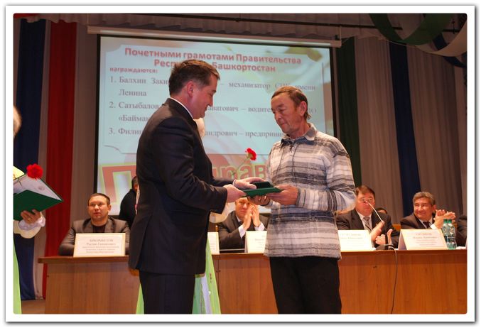 поучаствовать в народных гуляньях. Будто стараясь показать всю мощь АПК района, рядами выстроились машины сельхозтоваропроизводителей. Здесь можно было купить не только зерновую продукцию, но и лошадей, крупный и мелкий рогатый скот, домашнюю птицу. Желающие заняться благоустройством личного хозяйства могли приобрести пиломатериалы, кирпичи, трубы и т. д. На ярмарке был представлен широкий выбор мясной и молочной продукции. Большим интересом у населения пользовался овощной ряд ярмарки, где можно было оптом приобрести капусту, картофель, морковь, лук и свеклу. В тот же день в Центре народного творчества состоялось чествование работников сельского хозяйства. Тружеников села поздравили с их профессиональным праздником заместитель Премьер-министра — Руководитель Аппарата Правительства Республики Башкортостан И.А. Тажитдинов, Руководитель Секретариата Госсобрания — Курултая Республики Башкортостан З.И. Еникеев, директор ГНУ БНИИСХ Россельхозакадемии В.М. Шириев, глава Администрации МР Баймакский район И.Х. Ситидиков, глава Администрации ГО г. Сибай Х.Х. Сулейманов и другие. Помимо подведения итогов производственного года, на торжественном собрании передовикам сельского хозяйства были вручены Почетные грамоты и ценные подарки от Правительства РБ, Госсобрания — Курултая РБ, Министерства сельского хозяйства РБ. И.Х. Ситдиков вручил дипломы разных степеней и денежные премии коллективам хозяйств и фермерам, победившим в районных соревнованиях по уборке урожая и заготовке кормов. Также за вклад в развитие агропромышленного комплекса района были отмечены лучшие по профессии специалисты и работники сельхозпредприятий.Были подведены итоги по благоустройству. По завершению официальной части тружеников села поздравили красочным концертом артисты Центра народного творчества и народные таланты со всего района. Обсудили и проблемы В этот же день в зале заседаний райадминистрации состоялась встреча глав городского и сельских поселений, руководителей предприятий, организаций, учреждений города, руководителей хозяйств с представителями республиканских органов власти, ведомств. Во встрече приняли участие заместитель Премьер-министра-Руководитель Аппарата Правительства РБ И.А. Тажитдинов, Руководитель Секретариата Госсобрания – Курултая РБ З.И. Еникеев, директор ГНУ БНИИСХ Россельхозакадемии В.М. Шириев, зам. руководителя КП "Управление дорожного хозяйства Республики Башкортостан" Р.Н. Нугуманов, зам. министра молодёжной политики, спорта и туризма РБ Р.Г. Бикимбетов, депутат Госсобрания-Курултая РБ, директор ООО "ПМК-Баймак" Р.Р. Сырлыбаев. Работой совещания, которое проходило в форме вопросов-ответов, руководил глава Администрации муниципального района И.Х. Ситдиков. Первым слово было предоставлено Почётному гражданину города и района, бывшему директору Баймакского машзавода А.С. Манылову. Уважаемый ветеран поднял вопрос насчёт достойного проведения юбилея градообразующего предприятия, которое будет отмечать в 2013 году своё 100-летие. Выступивший вслед глава Администрации ГП г. Баймак И.А. Бураншин предложил столетие завода проводить в рамках 75-летнего юбилея Баймака, отметив при этом, что город и машзавод неотделимы друг от друга. Назвав позитивные изменения в городе за последние годы (газификация, электрификация, 